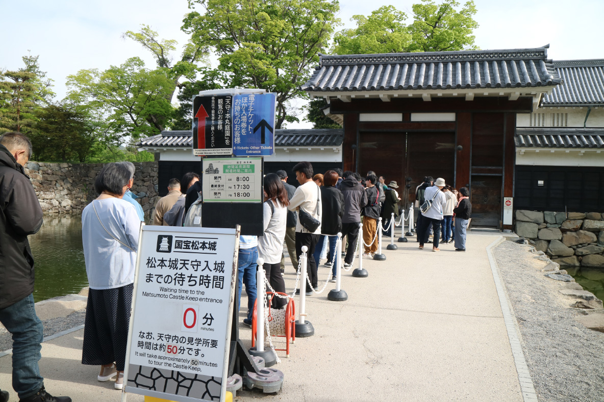 この時すでに天守閣への入場は2時間待ち。松本城の長すぎる列に驚愕です!