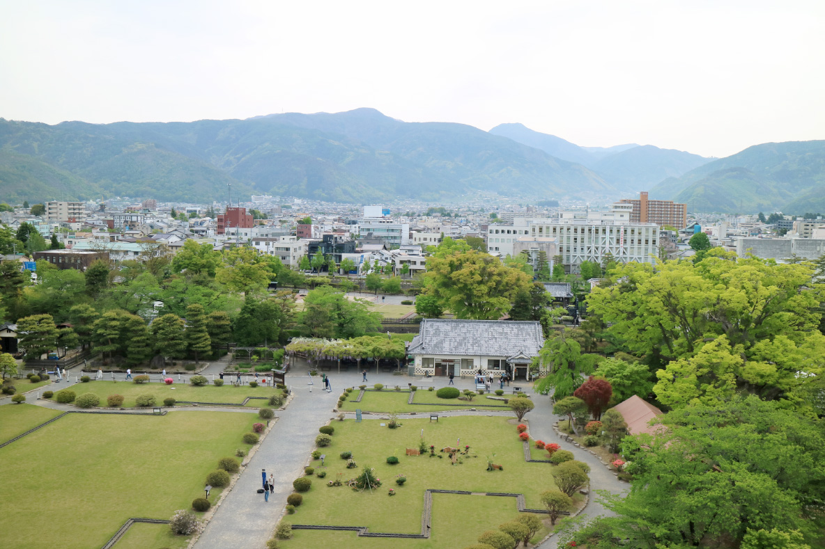 天守最上階からは本丸庭園や松本市街の景色が楽しめました。