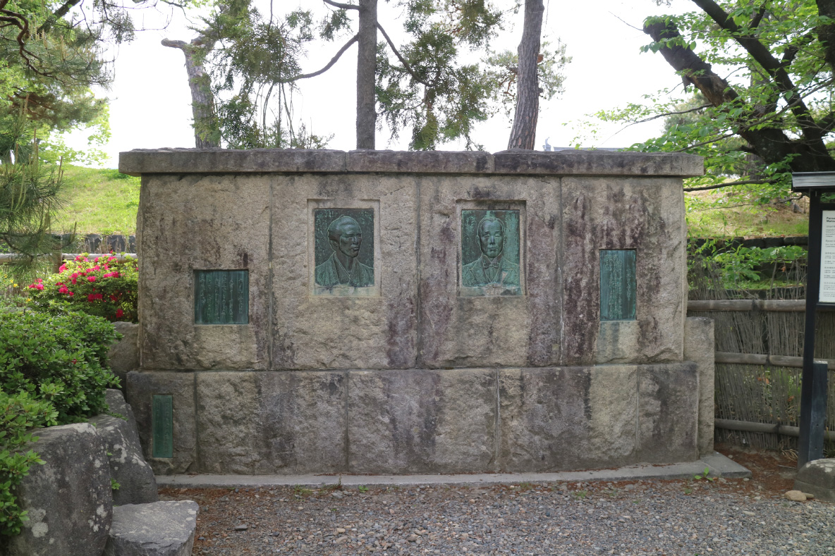 その功績を称え、松本城天守保存に大きく貢献した2人の遺志を今に伝えるための碑が建立されています。