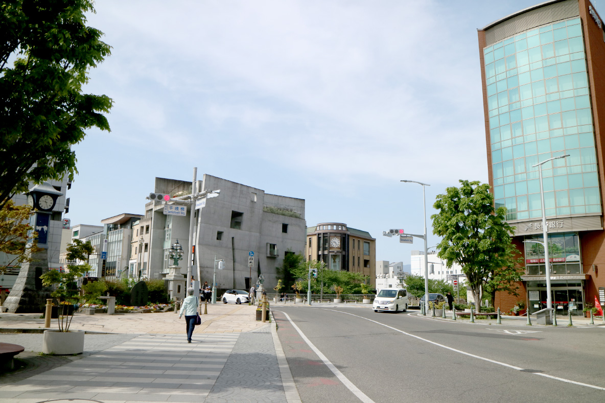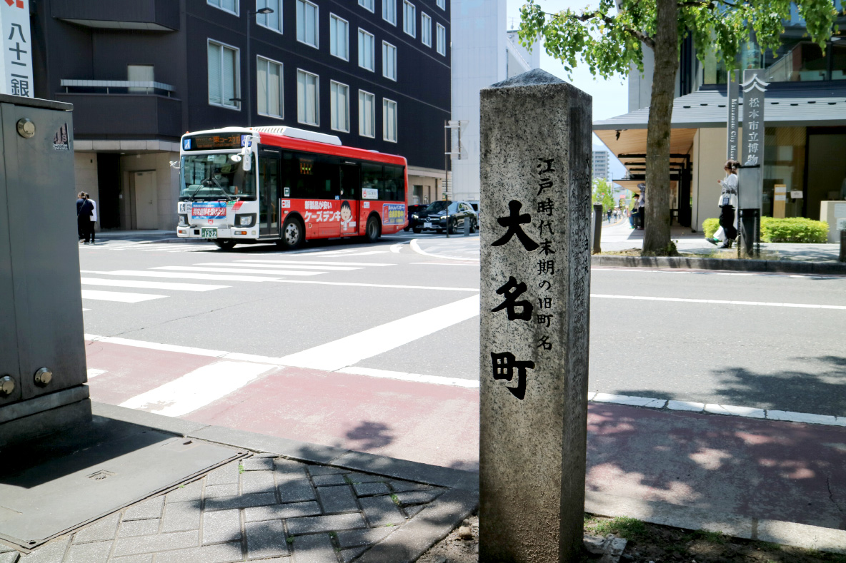 なわて通りを進むと見えてくるのが、松本市旧市役所跡。
