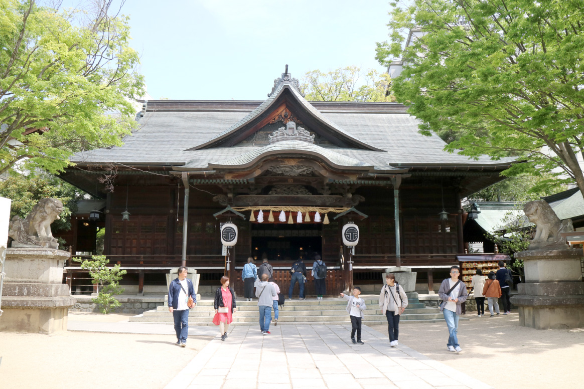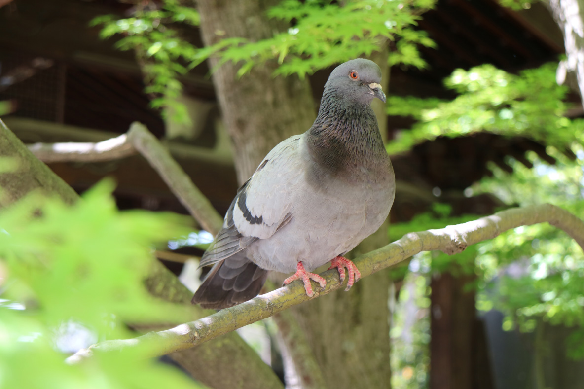 境内にいたハトが人懐っこくて、子供の肩や頭の上に乗ったりしてました。