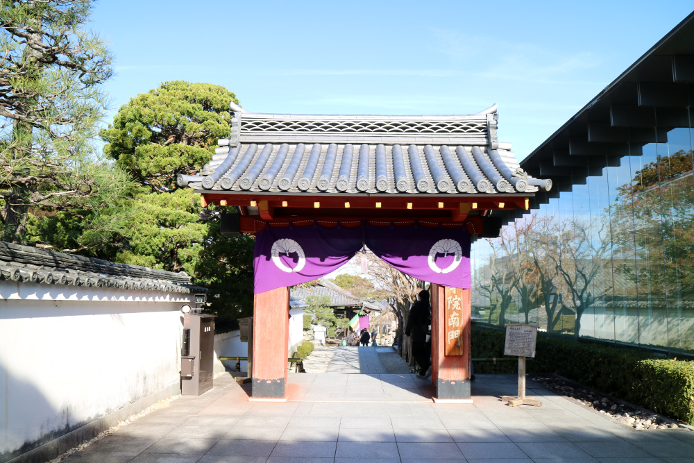 江戸時代初期、伏見桃山城から移築された秀吉ゆかりの城門「薬医門」です。