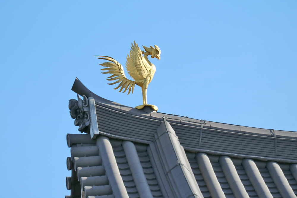 屋根には、金色に輝く鳳凰が佇んでおり、これは1968年に取り替えられた2代目です。
