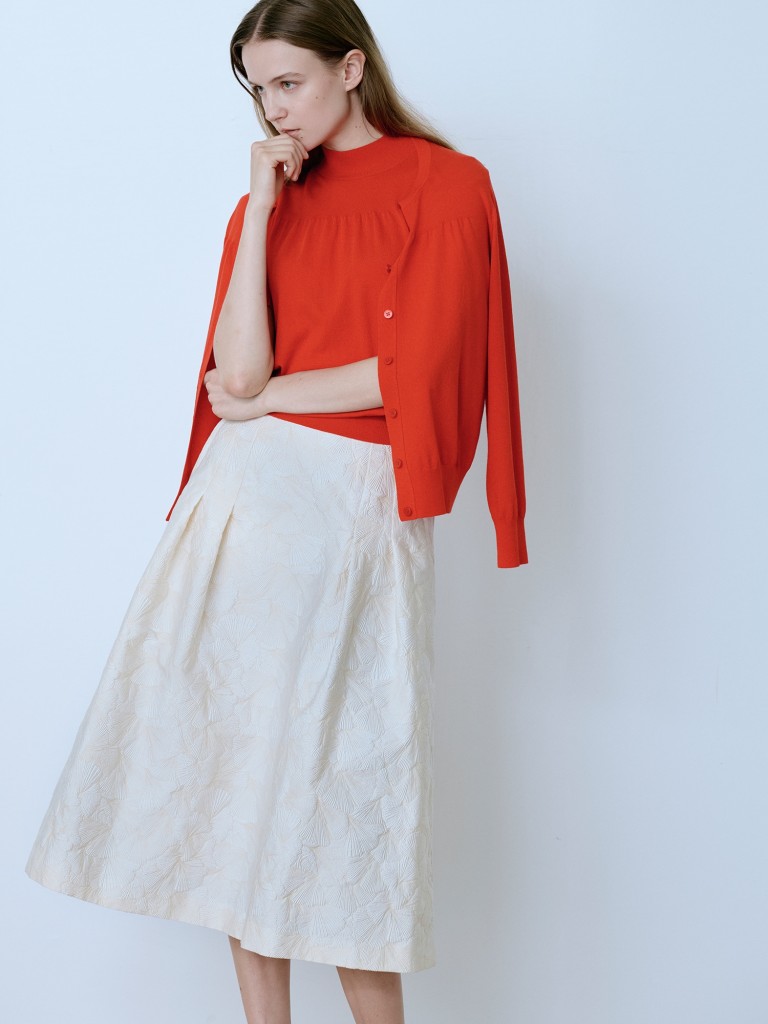 ジャガード素材のスカートは繊細な柄ゆきと上品な光沢感、そしてふっくらとした風合いが魅力です。
